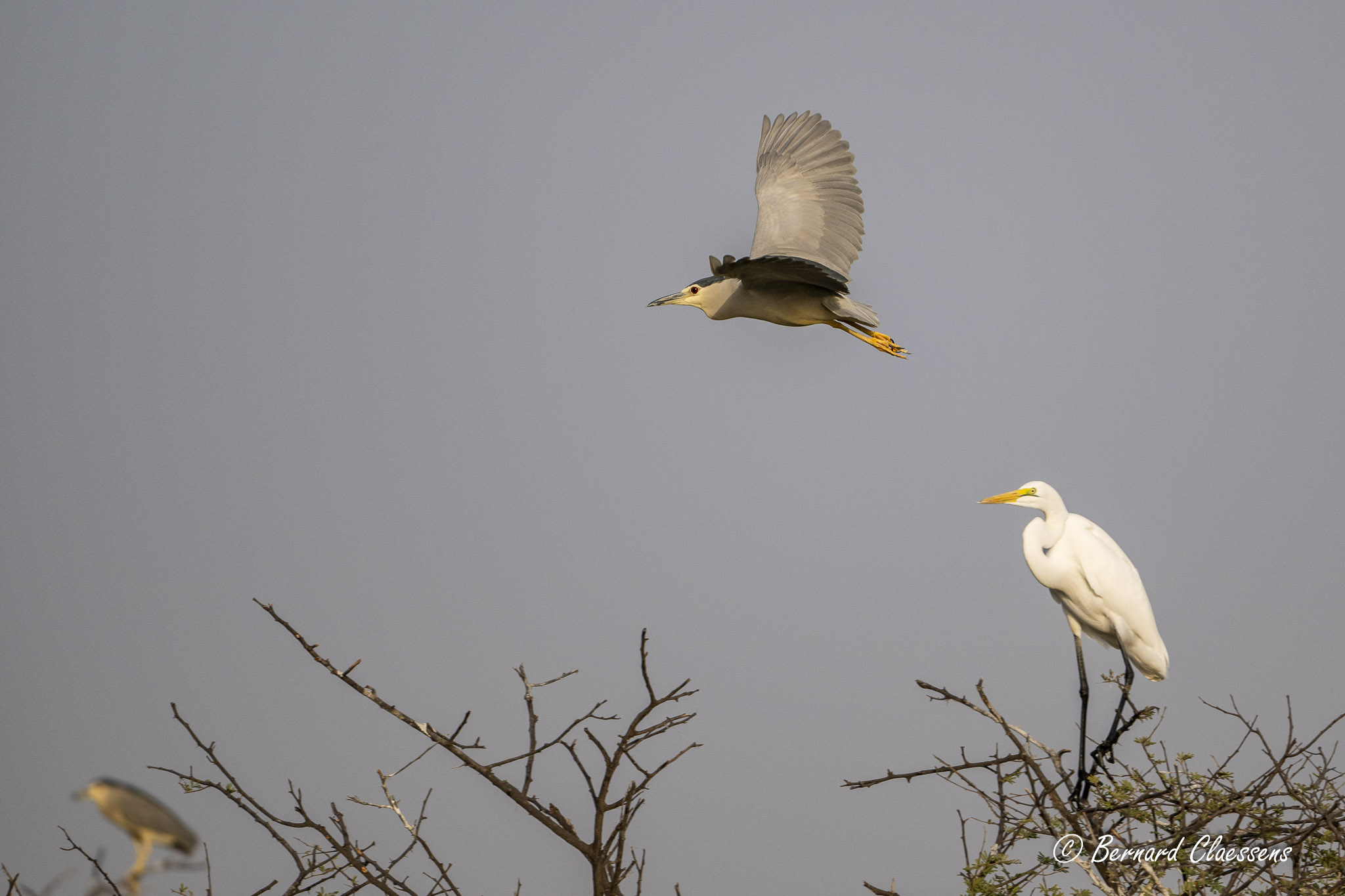 Bihoreau gris et Grande aigrette
